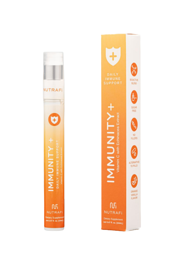 IMMUNITY + supports your immune system and is great to use when battling the common cold. Powered by vitamin E,C, and Echinacea Extract, this spray restores your body’s energy. Our spray is easy to digest, gentle on your stomach and quickly absorbed.